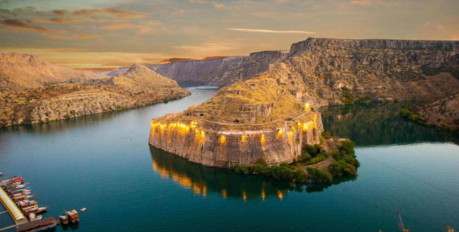 Barajı ile bir kısmı sular altında kalan Halfeti’ye doğru yola çıkıyoruz. Bizi bekleyen özel teknemizle Birecik baraj gölü üzerinde birbirinden güzel manzaraların eşliğinde yaklaşık bir saat sürecek TUR FİYATINA DAHİL Halfeti Tekne Turumuza başlıyoruz. Tekne turumuz esnasında ilk dikkatimizi çeken Fırat nehri ile Merziman Çayı’nın birleştiği noktada kurulan heybetli Rumkale oluyor. Kalenin ardından bir zamanlar yaşam alanı olarak kullanılmış mağara evlerinin  anlatımını dinledikten sonra önemli bir kısmı sular altında kalmış olan Savaşan köyünü, sular altında kalan caminin suların üzerinde kalan tek kısmı olan minaresini görüp fotoğrafladıktan sonra  tekne turumuzu bitirip otobüsünüze binerek Gaziantep’e doğru hareket ediyoruz.
